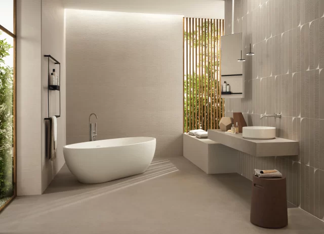 Ένα έργο επιφανειών εμπνευσμένων από τον κόσμο του βουρτσισμένου τσιμέντου και των συνθετικών ρητινών, για την κάλυψη δαπέδων και τοίχων με ένα άγγιγμα σύγχρονου στυλ, σε αρχιτεκτονικούς χώρους που είναι πρωτοποριακοί και αυθεντικοί. Οι μεγάλες πλάκες είναι ιδανικές για το σχεδιασμό πολυτελών και υψηλών προδιαγραφών χώρων που εντυπωσιάζουν όλους όσους εισέρχονται.